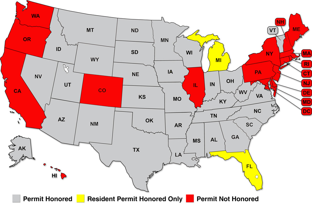 We try to stay as up to date as possible, but always check with local law enforcement to be sure about which states honor your states permit.